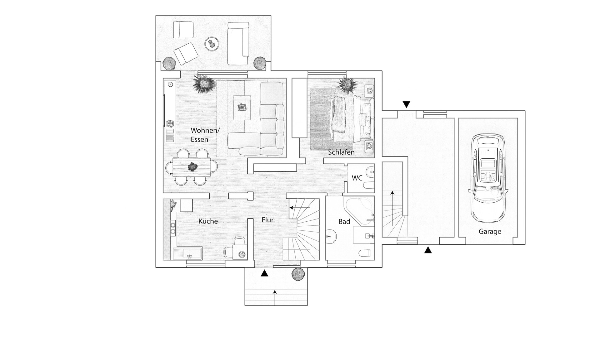 Ausreichend Platz für die gesamte Familie bietet die anliegende Terrasse in sonniger Südausrichtung.