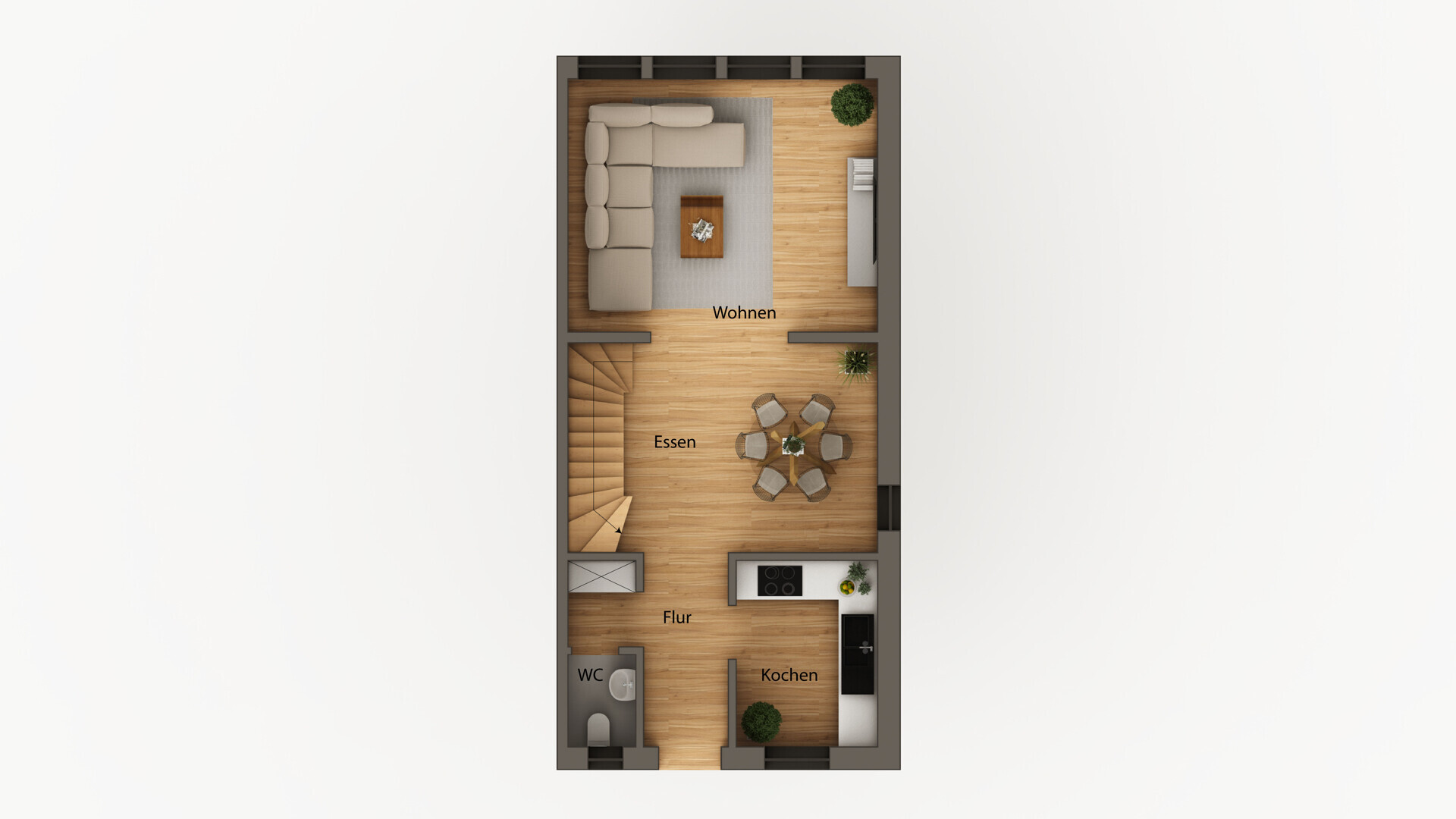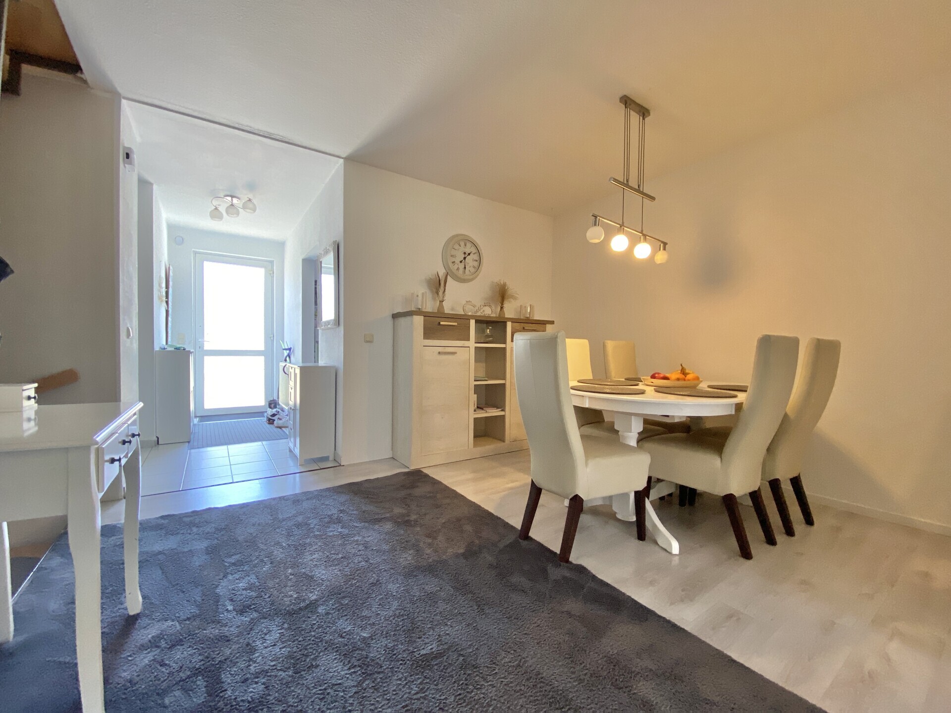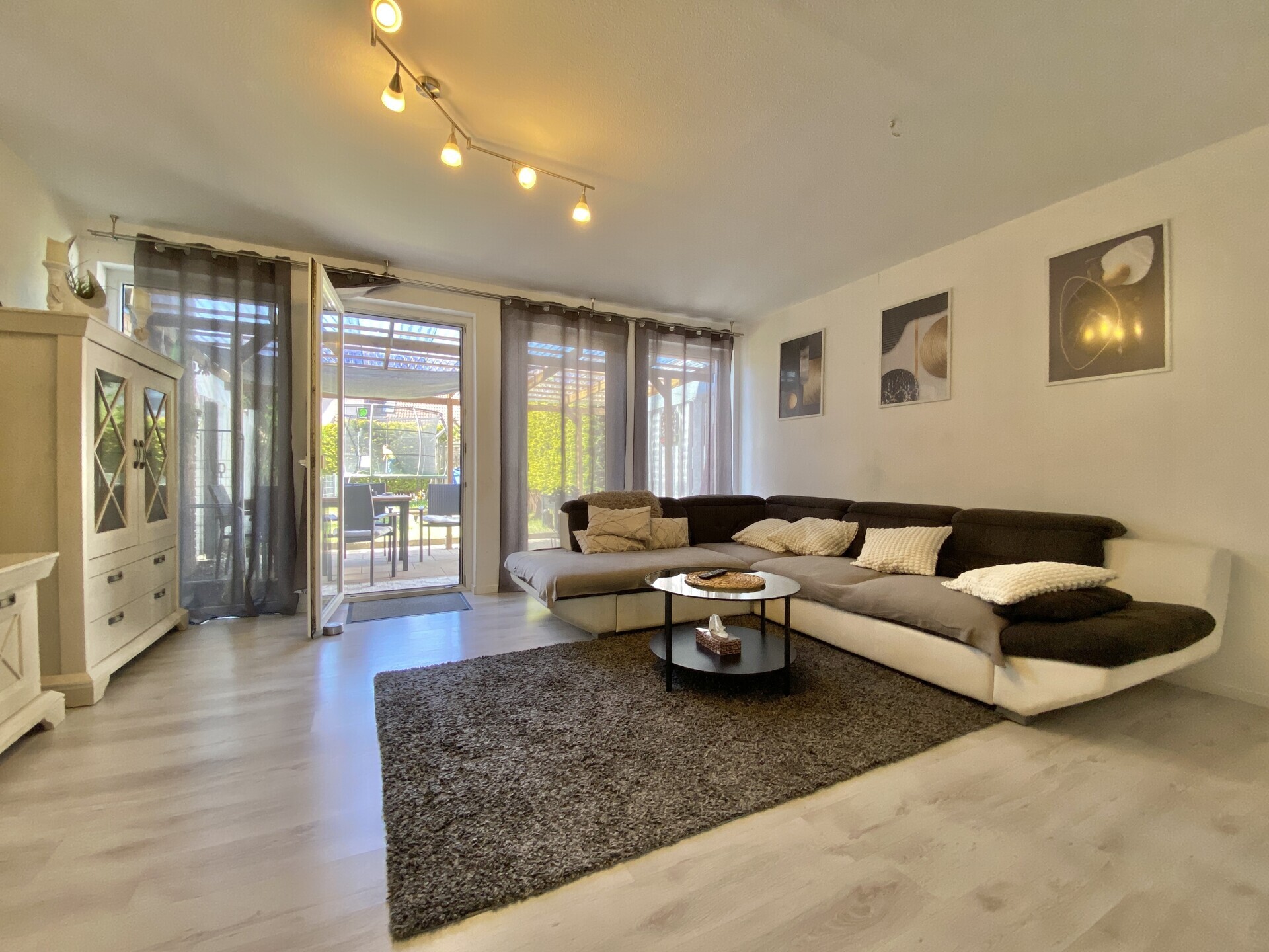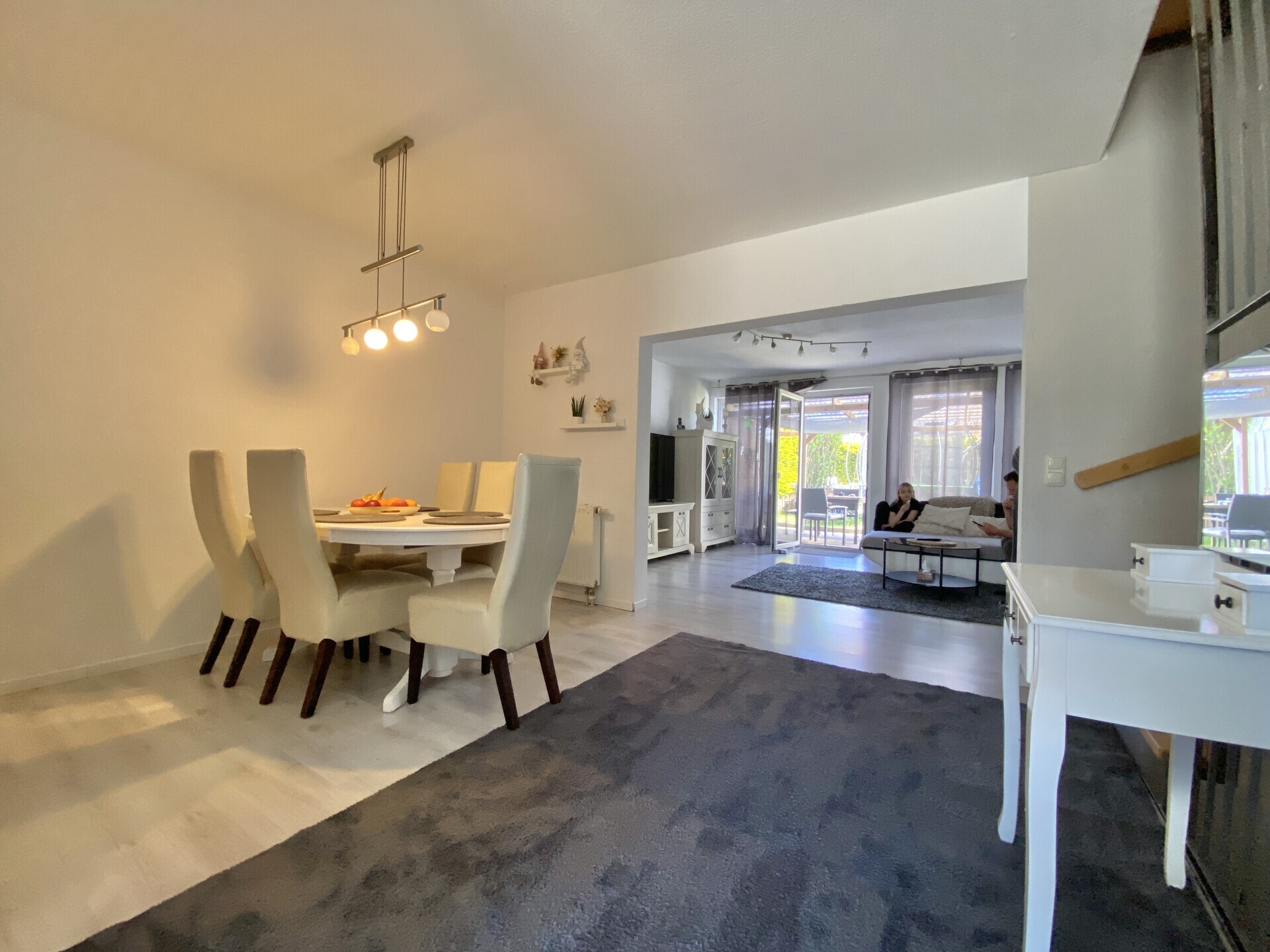Auf 115,50 m² Wohnfläche und insgesamt drei Etagen findet das Familienleben seinen Platz. Das Erdgeschoss überzeugt mit einem hellen Wohn-/Essbereich und direktem Zugang zur überdachten Terrasse und dem eingefriedeten Garten – ideal für lange Sommerabende oder das Toben der Kinder im Freien. Die Küche ist separat und praktisch geschnitten, ein Gäste-WC sowie Garderobenbereich runden das Erdgeschoss ab.