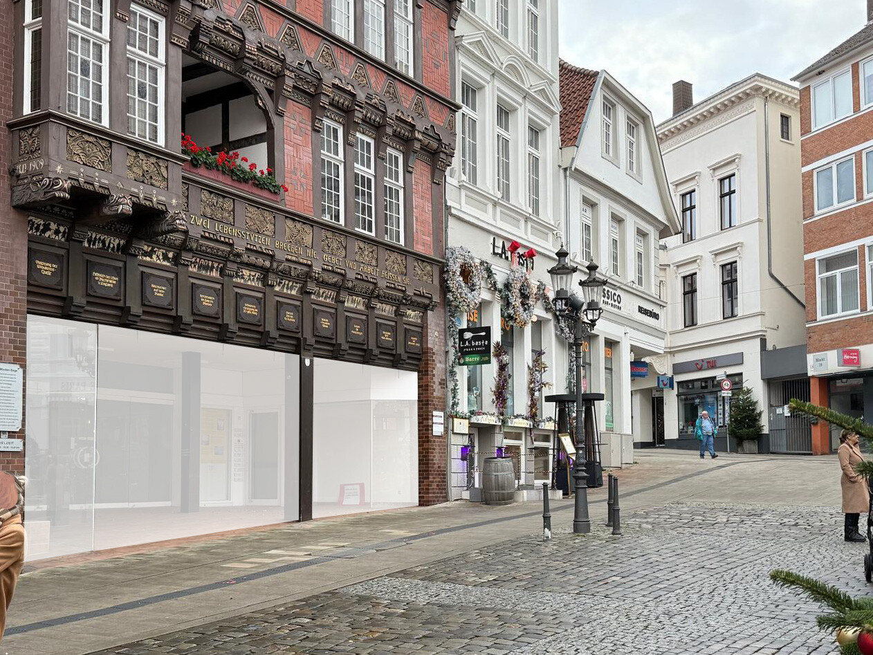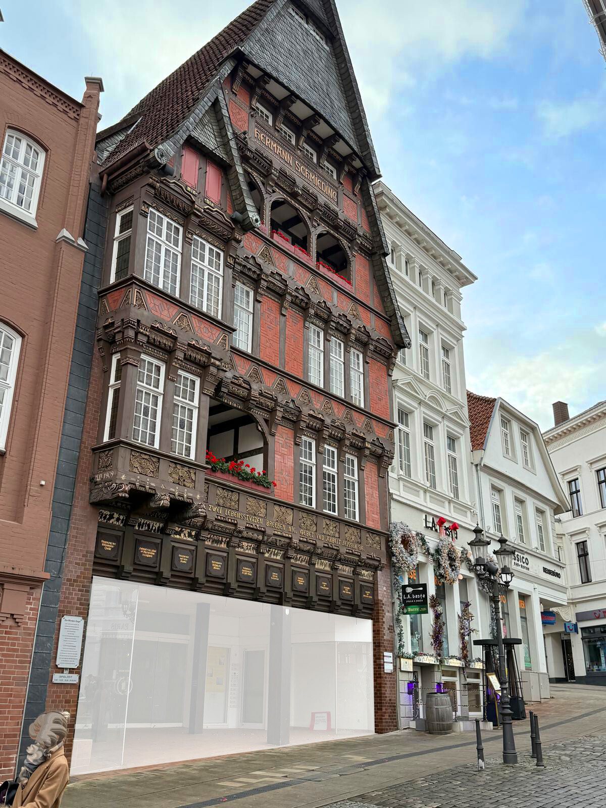 Das Gebäude liegt absolut zentral im Herzen der historischen Altstadt von Minden, direkt mit Zugang zum Marktplatz und der Leiterstraße.