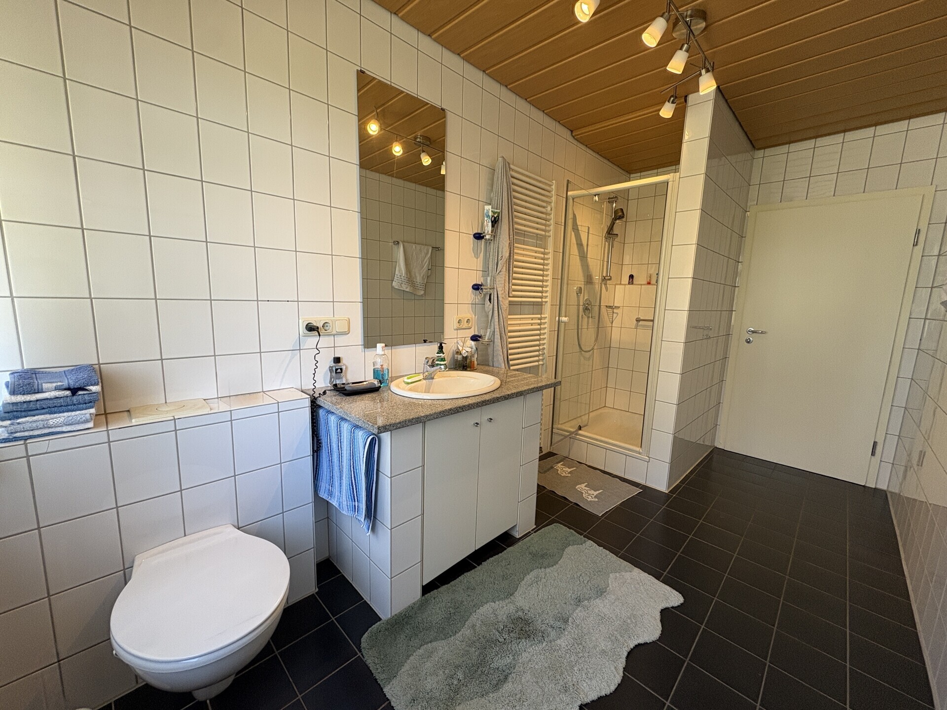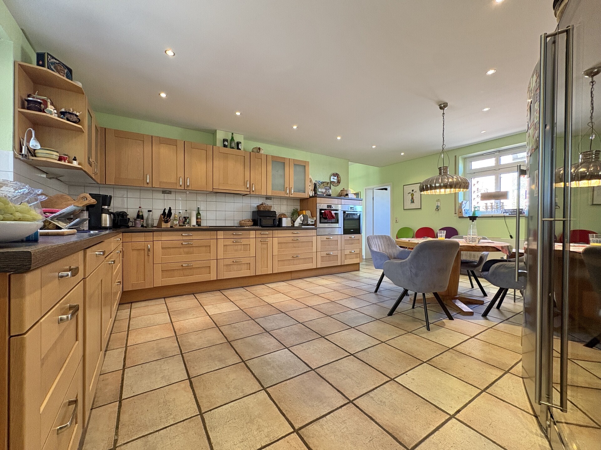 Im Erdgeschoss erwartet Sie ein lichtdurchfluteter, offen gestalteter Wohn-/Essbereich mit Kamin und direktem Zugang zur Sonnenterrasse mit Markise sowie in den weitläufigen Garten – perfekt für Familienleben und entspannte Stunden im Freien. Ergänzt wird die Ebene durch Küche, Arbeitszimmer, Gäste-WC, Sauna sowie den direkten Zugang zur Doppelgarage. Fußbodenheizung im Erdgeschoss und in den Bädern sorgt für angenehmen Wohnkomfort. Im Obergeschoss bietet ein separater Elternbereich mit eigenem Bad einen privaten Rückzugsort, während drei Kinderzimmer und ein weiteres Bad ideale Voraussetzungen für den Familienalltag schaffen. Das ausgebaute Dachgeschoss erweitert das Raumangebot um zwei Gästezimmer mit Bad, ein Homeoffice sowie einen Fitnessraum. Auch energetisch ist das Haus sehr gut aufgestellt: Gas-Brennwertheizung (Buderus, 2016), Warmwasser-Wärmepumpe, PV-Anlage (ca. 9,72 kWp, 2016/2023), Stromspeicher und Wallbox verbinden solide Bauweise mit moderner Technik. Der Endenergieverbrauch beträgt 75,15 kWh/(m²a). Ein hochwertiges Zuhause mit außergewöhnlich viel Platz, durchdachter Aufteilung und zukunftsorientierter Ausstattung - ideal für Familien
