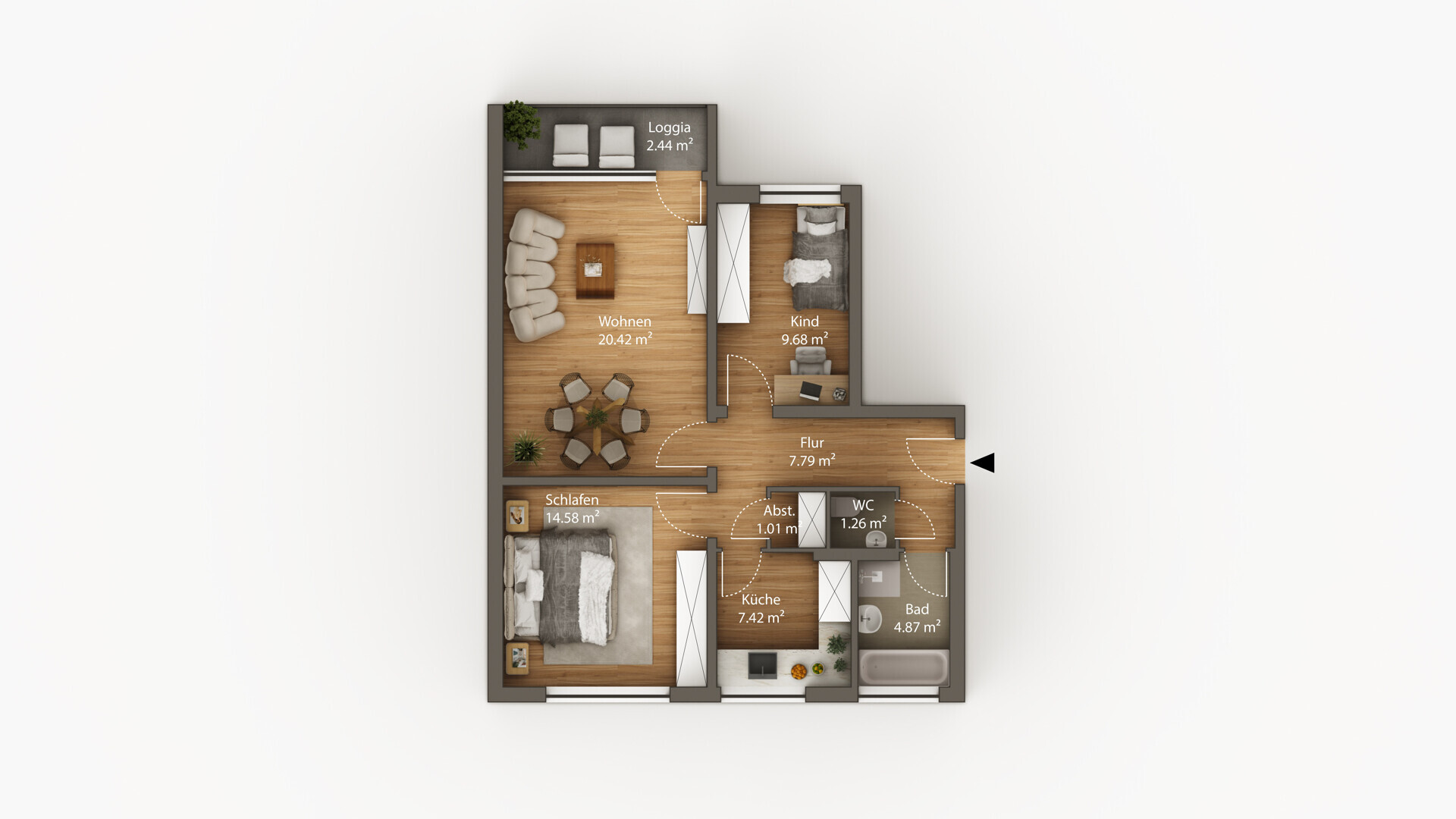 In zentraler Lage von Minden, unweit der Kampa-Halle und des Mittellandkanals, befindet sich diese gepflegte Eigentumswohnung im 4. Obergeschoss eines soliden Mehrfamilienhauses aus dem Jahr 1973. Die Wohnung überzeugt durch eine funktionale Raumaufteilung: Das großzügige Wohnzimmer mit direktem Zugang zur Loggia bildet den Mittelpunkt des Wohnens – ein Ort, an dem Sie entspannen und den weiten Blick über die Umgebung schweifen lassen können.Neben dem Wohnzimmer stehen ein gemütliches Schlafzimmer sowie ein weiteres Zimmer zur Verfügung, das sich ideal als Kinder-, Arbeits- oder Gästezimmer nutzen lässt. Die separate Küche bietet ausreichend Platz für eine L-Küche und einen Esstisch. Das Bad ist bereits mit Badewanne und Dusche ausgestattet und in modernen Grau- und Weißtönen gefliest. Es befindet sich in einem sanierungsbedürftigen Zustand – eine gute Gelegenheit, es nach den persönlichen Vorstellungen neu zu gestalten. Auch in puncto Stauraum überzeugt die Wohnung: Ein praktischer Abstellraum innerhalb der Wohnung sowie ein eigener Kellerraum bieten ausreichend Platz für alles, was nicht täglich benötigt wird. In den Wohnräumen ist ein grauer Laminatboden verlegt, der ein zeitgemäßes Erscheinungsbild vermittelt. Besonders hervorzuheben sind die bereits erneuerten, 2-fach verglasten Kunststofffenster (2014), die nicht nur für eine gute Energieeffizienz sorgen, sondern auch den Wohnkomfort spürbar erhöhen. Der Endenergieverbrauch liegt bei 108,7 kWh/(m²·a), die Beheizung erfolgt über eine Ölzentralheizung aus dem Jahr 2004. Die Wohnung ist bereits freigestellt und kann sofort bezogen oder neu vermietet werden. Ein echter Pluspunkt, gerade für Eigennutzer und eine hervorragende Gelegenheit, eine solide Immobilie zu einem guten Preis in angenehmer Wohnlage zu erwerben.